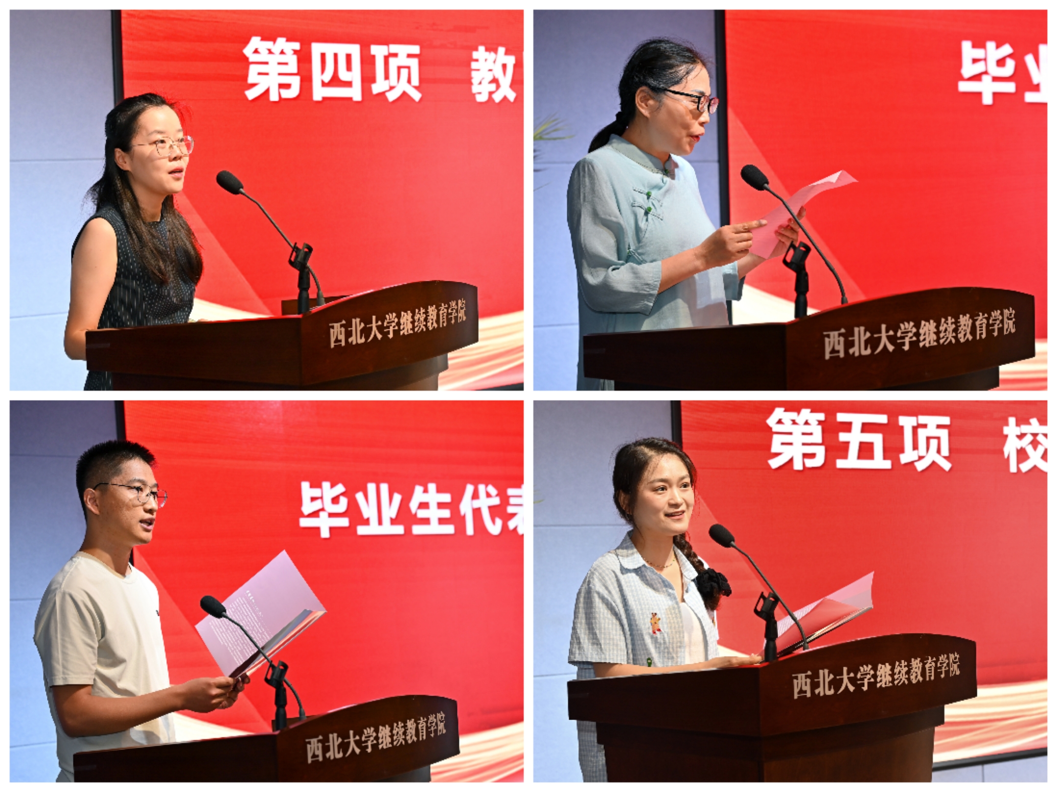 汉语言文学专业付薇、城乡规划专业苏志刚代表全体毕业生向母校致以最崇高的敬意,向授业解惑的老师致以最真挚的感谢,也向支持自己在职学习的家人表达了由衷的感激。员工代表2021届毕业生王萌笑结合自身工作发展和生活阅历,表达了这段宝贵的求学经历对自己事业发展的深远影响。鼓励学弟学妹们始终秉持渴望学习的初心,抓住机遇充实自己、提升自己。