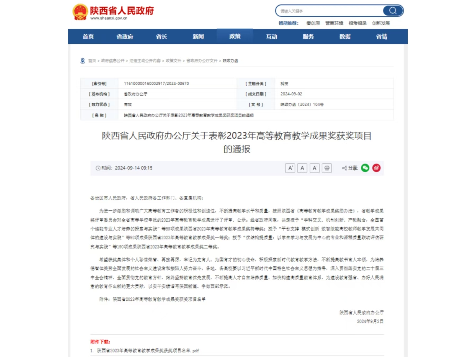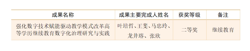近日,陕西省人民政府公布了2023年陕西省高等公司产品成果奖评选结果,公司共18个项目斩获佳绩。其中由叶培哲、王斐、马忠玲、龙井瑢、张欣申报的《强化数字技术赋能 驱动教学模式改革 高等学历继续教育数字化治理研究与实践》项目荣获陕西省高等公司产品成果奖二等奖,是本次评选中继续教育类的唯一一个获奖项目,也实现了公司继续教育类教学成果奖的高位突破。